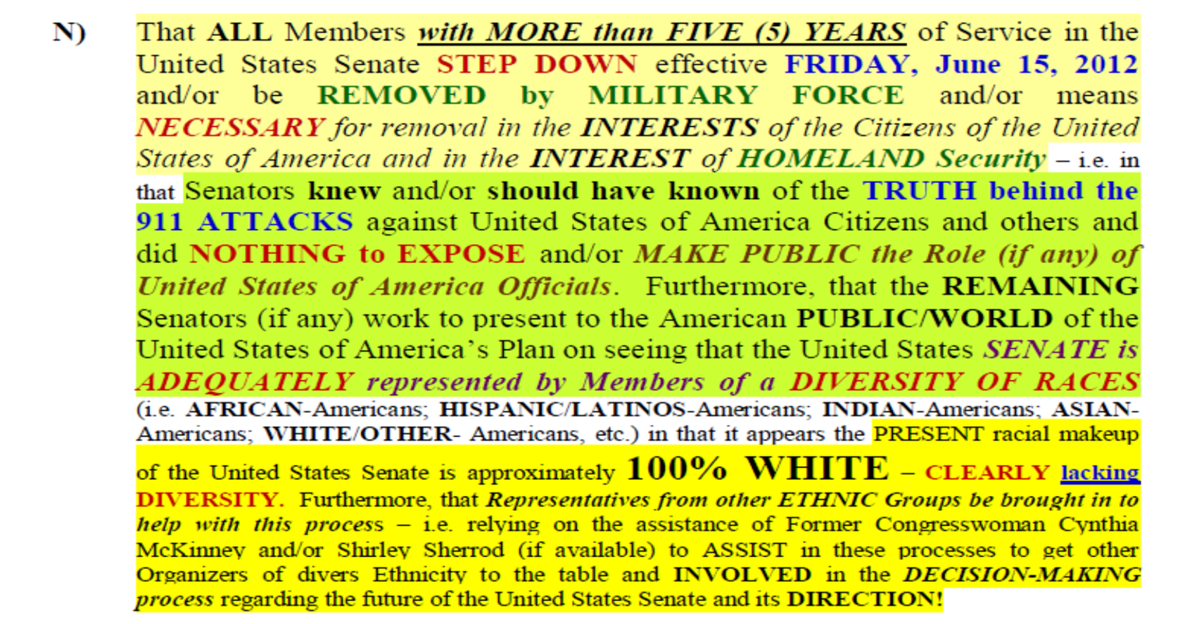 The CTN’s / UIE’s Matriarch being a strong advocate for keeping notes / a diary – i.e. advising the Prime Minister that, “the White Man does not think we have good sense.” Therefore, document and record our own history! Words of Wisdom proving to be FATAL for the USA’s continued existence!