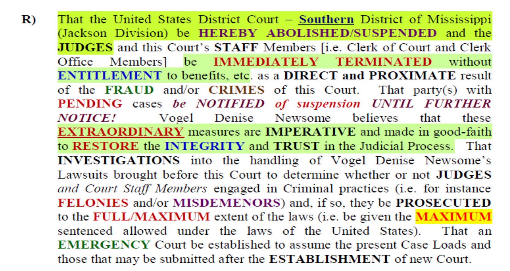 Orders were issued by the United States’ President Donald John Trump and his Legal Counsel Baker Donelson Lawyers to have the Town of Utica, Mississippi / Hinds County, Mississippi Officials to work with the United States Department of Defense Employees (Joe Lee Newsome / Annette Newsome / Harvellia Lupene Newsome Thomas . . . ), United States Department of Justice Employees (Cloteal Newsome Turner . . .), and other CO-Conspirators to aid and abet in CONSPIRACIES / WAR Crimes . . . in the KIDNAPPING of the Chickasaw Tribal Nation’s / Utica International Embassy’s Prime Minister Vogel Denise Newsome