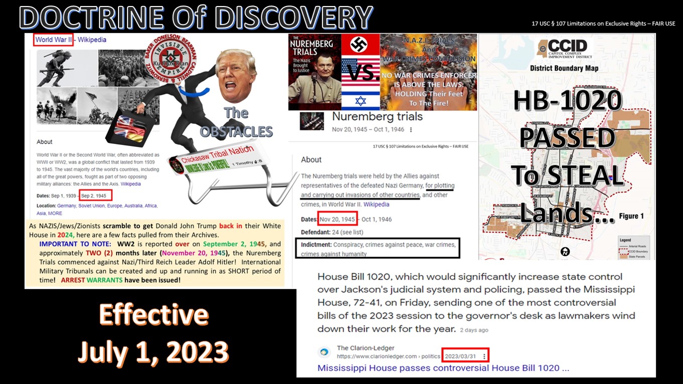 About July 1, 2023, UNLAWFULLY seek through “TERRORISTS Hostile Takeover,” to STEAL additional Lands / Territories, Properties and Resources, etc. as well as ENSLAVE those who have been LABELED as “BLACK Indians” (also known as Colored, Niggers, Negroes, BLACKS and African Americans, etc.)