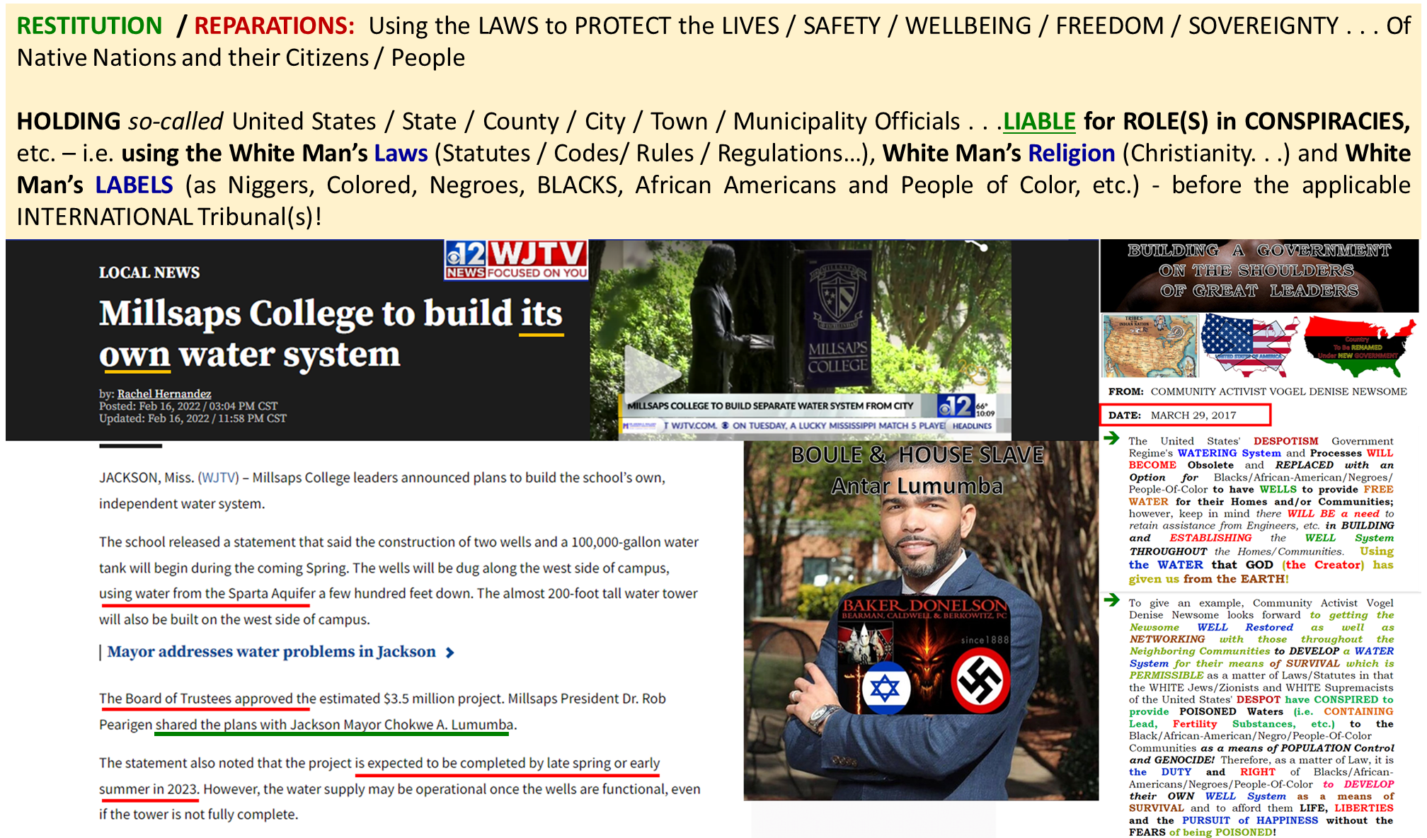 HOW Does A “WHITE” College / University Get A WELL SYSTEM “Before” A “BLACK Indian” Historically Black College / University? The United States of America’s Government AGENTS Are Used To SABOTAGE The Advancement Of The “BLACK Indians,” AFRICA / AFRIKA and Other NATIVE Nations and The NAZI’s “NEW Order” Agenda For GLOBAL White Supremacy!