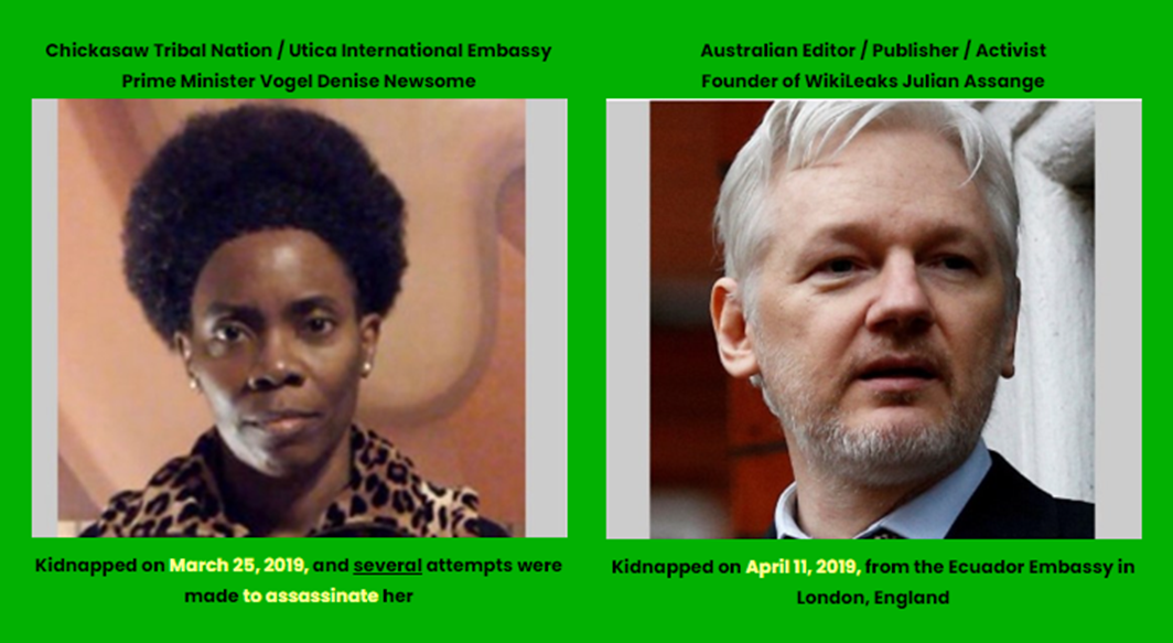 IMPORTANT TO NOTE: Julian Assange being the FIRST of several Political Prisoners being requested to be released IMMEDIATELY – i.e. in that United States of America’s Officials were insisting on having him EXTRADITED to the USA over the Chickasaw Tribal Nation’s/Utica International Embassy’s Officials’ OBJECTIONS! Therefore, remaining ACTIVE behind-the-scenes and focusing on getting OFFICIAL Complaint/EMERGENCY Petitions . . . submitted and AVOIDING the USA’s DISTRACTIONS… TACTICS, the CTN Officials being able to accomplish what previous “BLACK Indian” HUMAN RIGHTS/Civil Rights Activists (as Martin Luther King, Jr. and Malcolm X) were unable to accomplish because of the CONSPIRACIES of the USA’s NAZI/WHITE Supremacist/Ku Klux Klan . . . Officials to have them ASSASSINATED!